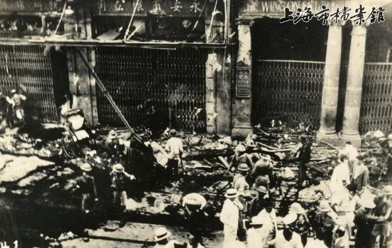 八一三事变中被炸的永安公司门前(上海市档案馆藏)