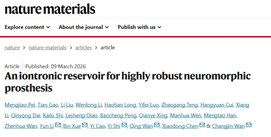 神经形态假体;水凝胶;离子电子学储层(HIRE);自修复材料;闭环神经刺激;储备池计算(Reservoir Computing)