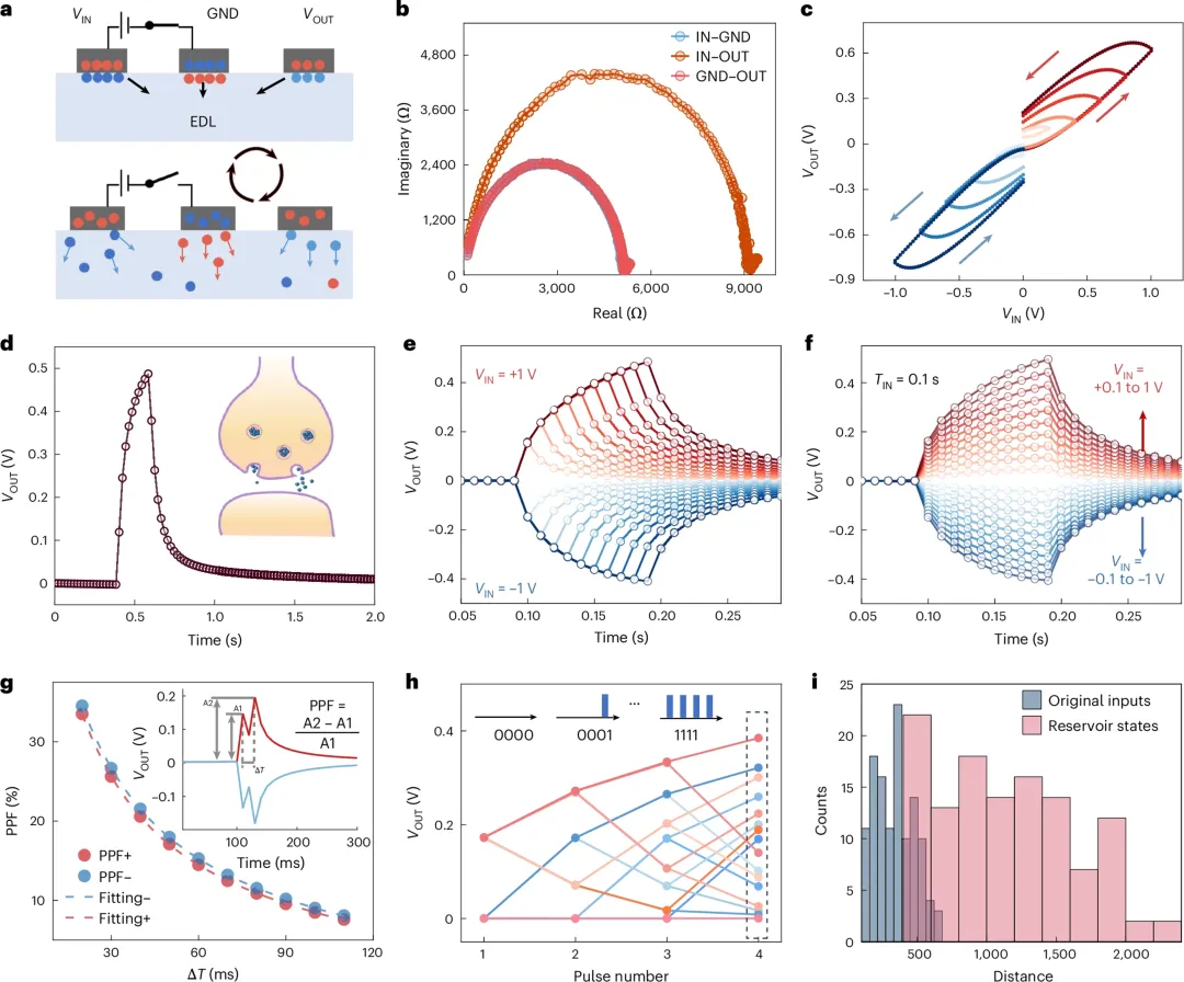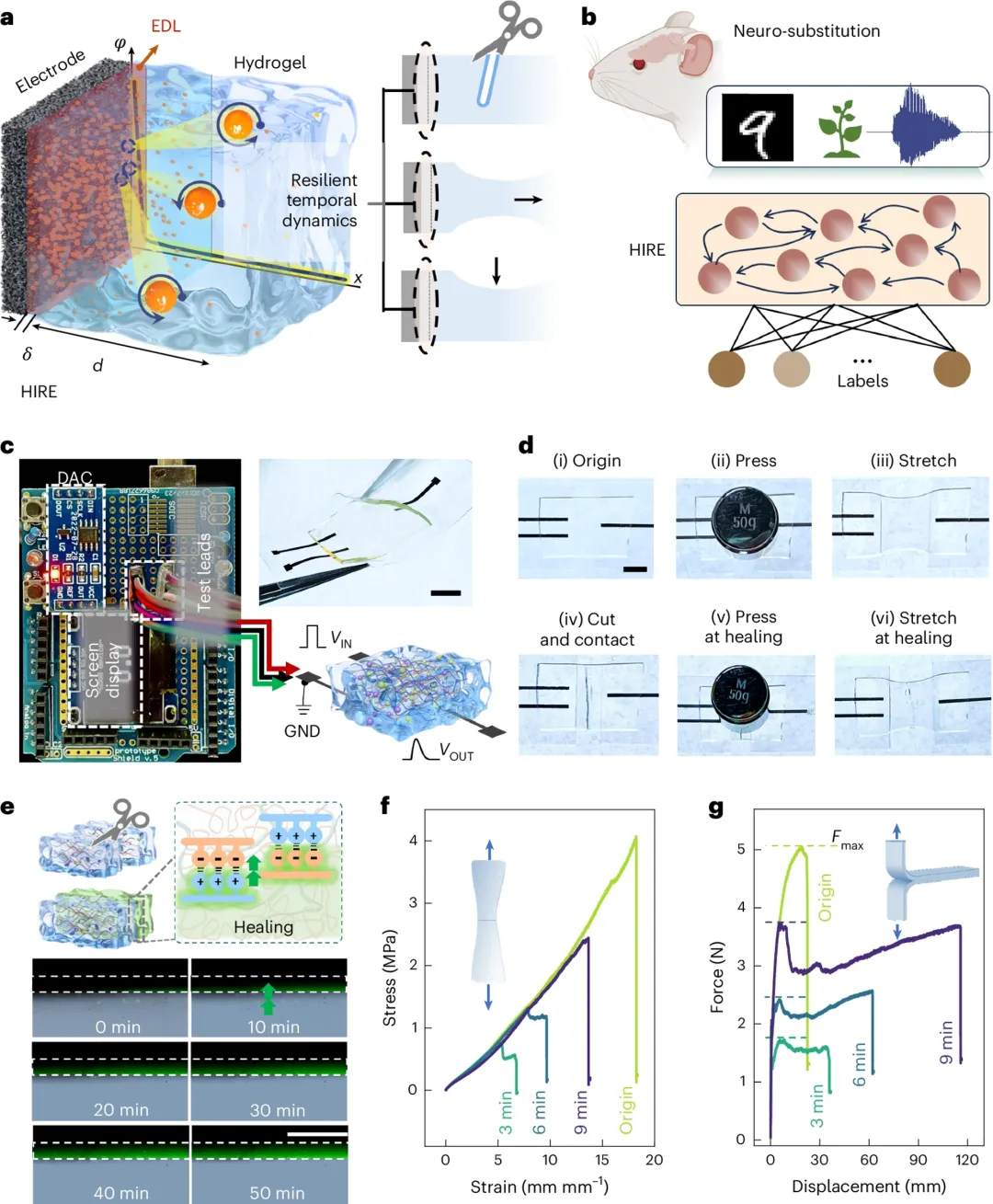 - HIRE利用纳米尺度的双电层(EDL)非线性动力学作为物理储层,能够高效预处理时间序列信号,并在物理损伤后无需训练即可快速恢复功能;