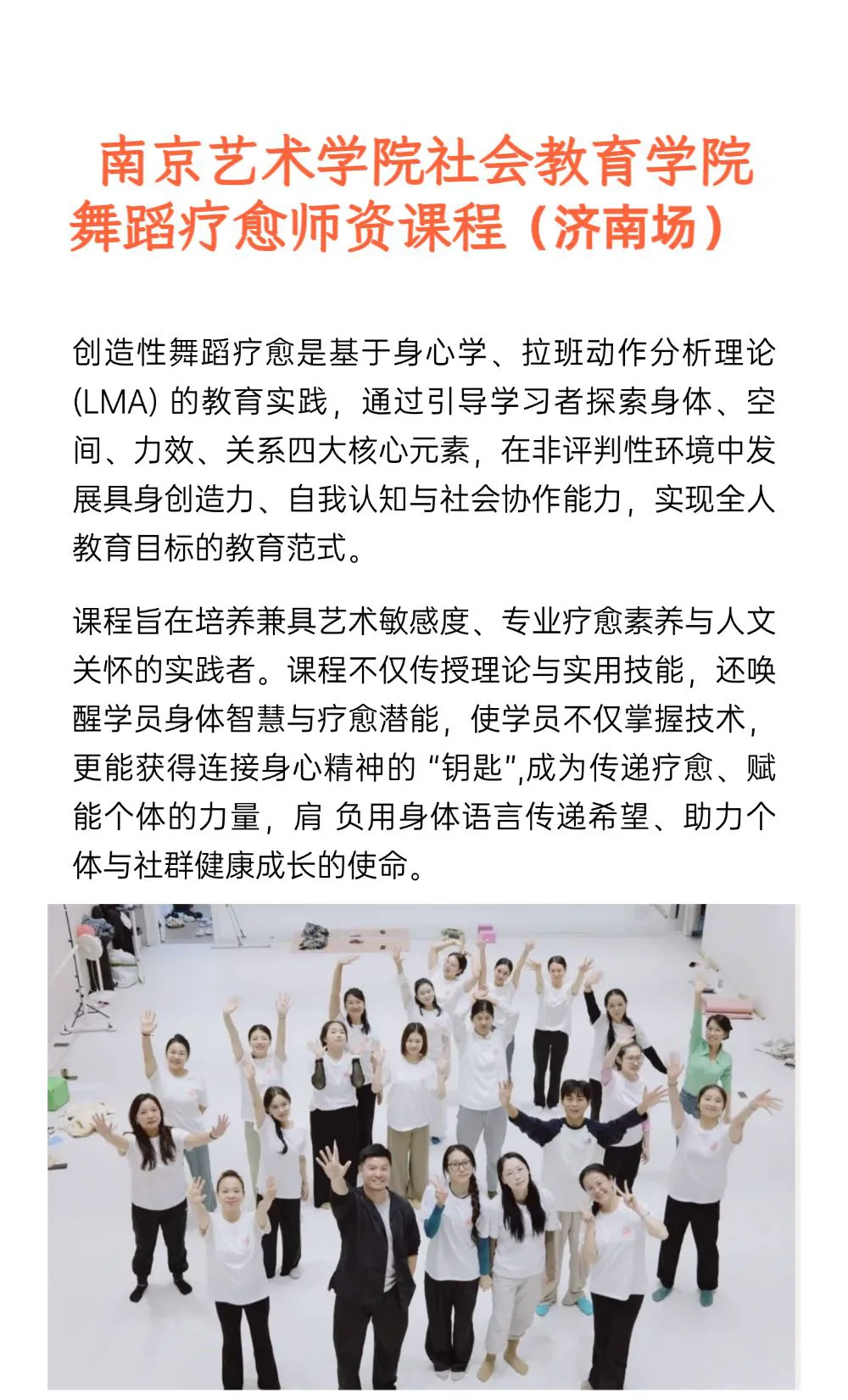 南京艺术学院社会教育学院艺术疗愈师-舞蹈疗愈专业(初级)师资研修班(山东·济南场)