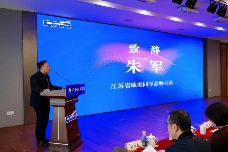 活动现场,江苏省欧美同学会秘书长朱军发表致辞,对专委会的成立表示祝贺,希望归国留学人员以专委会为平台,发挥专业特长,为江苏及南京的高质量发展贡献海归智慧与力量。
