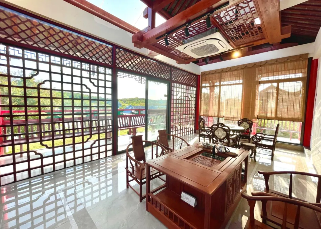 酒店以徽派的建筑风格,古典的设计元素,木质结构,牌楼大气恢弘,展现大福村欢迎宾客之从容体态。