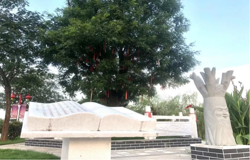 董永和七仙女想喜结连理可没有媒人,他们走到这棵树下时,老槐树开口说话,要为他们做媒,于是就有指槐为媒的传说。