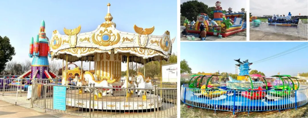 内设儿童飞车、手划船、儿童垂钓池、充气城堡、儿童蹦床、小火车等多项儿童设施。