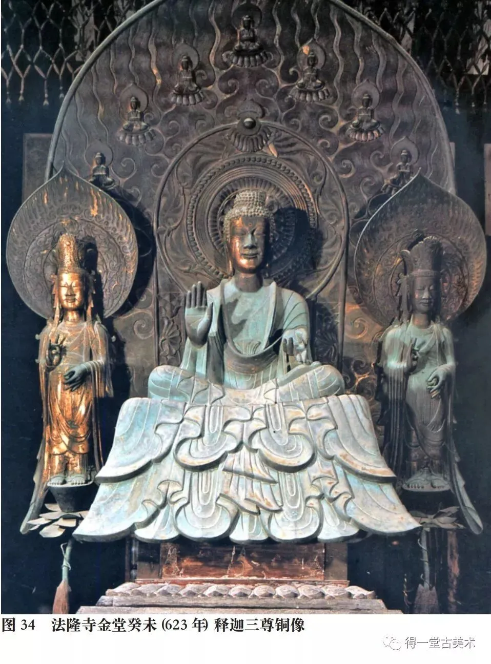 已有的日本飞鸟时代的佛像,几乎均为右手施无畏印,左手伸二指① 图三十四↑。