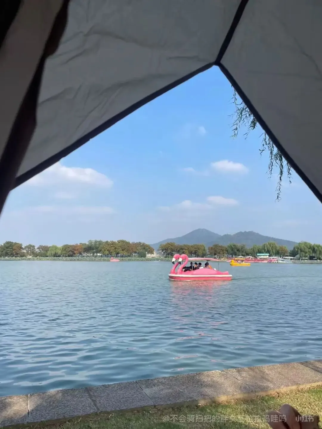 推荐理由:免费露营地,草坪、湖边、树林一应俱全,满足安静发呆、亲子撒欢、朋友小聚多种需求,紫金山脚下,风景超治愈。