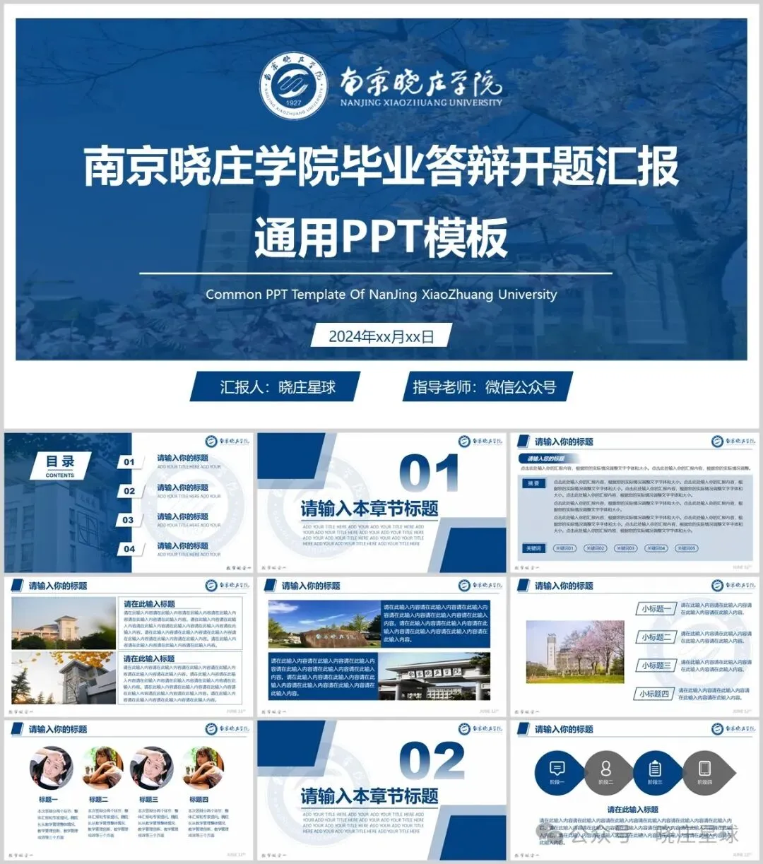 南京晓庄学院专属PPT模板来咯