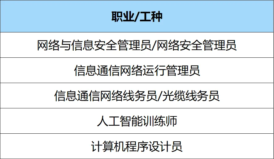 下图为我司可认定三级技能证书职业类别
