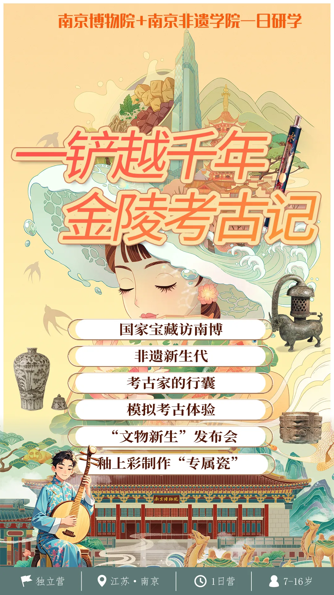 春假一日营丨南京博物院&南京非遗学院双馆研学,一铲越千年・考古记