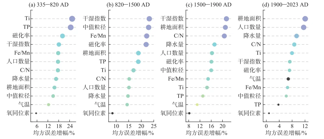 以Chl.a含量为响应变量,气候、物理化学及人类活动指标为解释变量构建机器学习模型 。通过计算不同时间片段内各特征变量的均方误差增幅(MSE),显式量化并评估各环境因子在不同历史阶段对初级生产力贡献的“相对重要性”权重 。