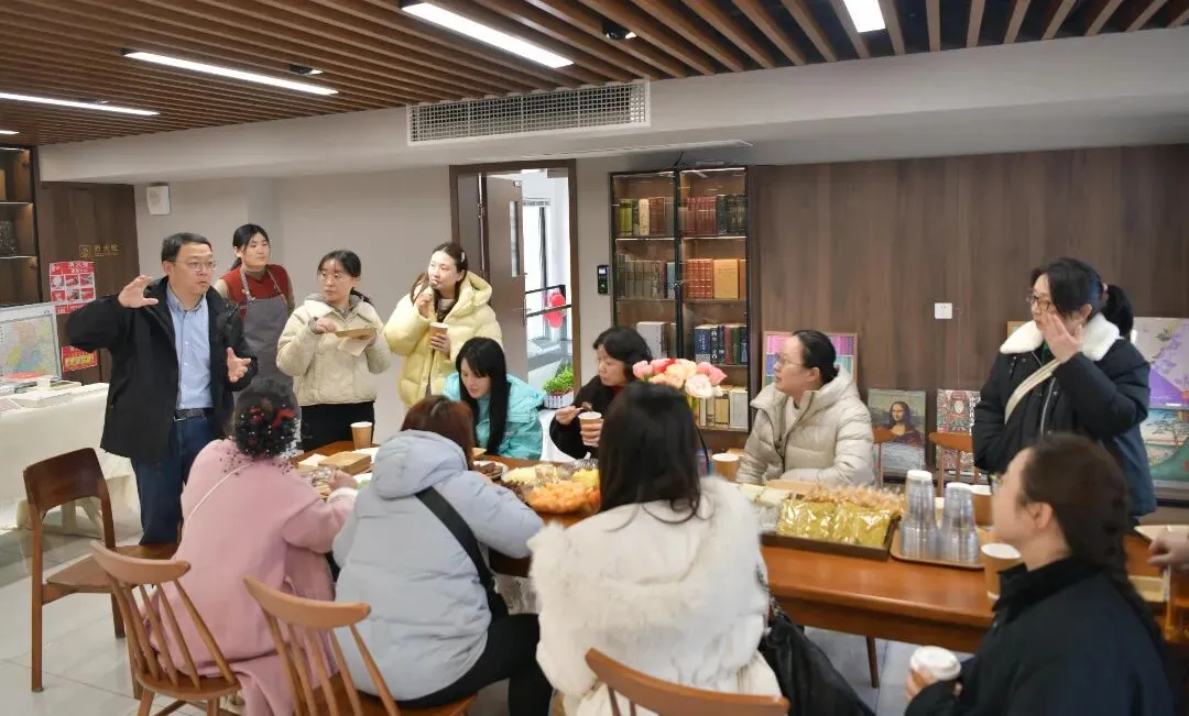 礼品慰问活动后,一场温馨治愈的兴趣课程体验活动缓缓拉开帷幕。步入书店,满室书香萦绕,静谧又雅致,女职工们放慢脚步,细细观赏“入海”艺术展,在墨香中陶冶情操、丰盈内心。随后的烘焙体验环节,大家分组动手制作玫瑰玛格丽特小饼干,从食材配比到揉面塑形,相互交流、默契配合,在亲手制作的过程中体验烘焙的乐趣。