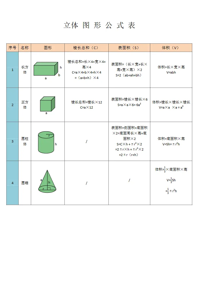 立体图形公式表