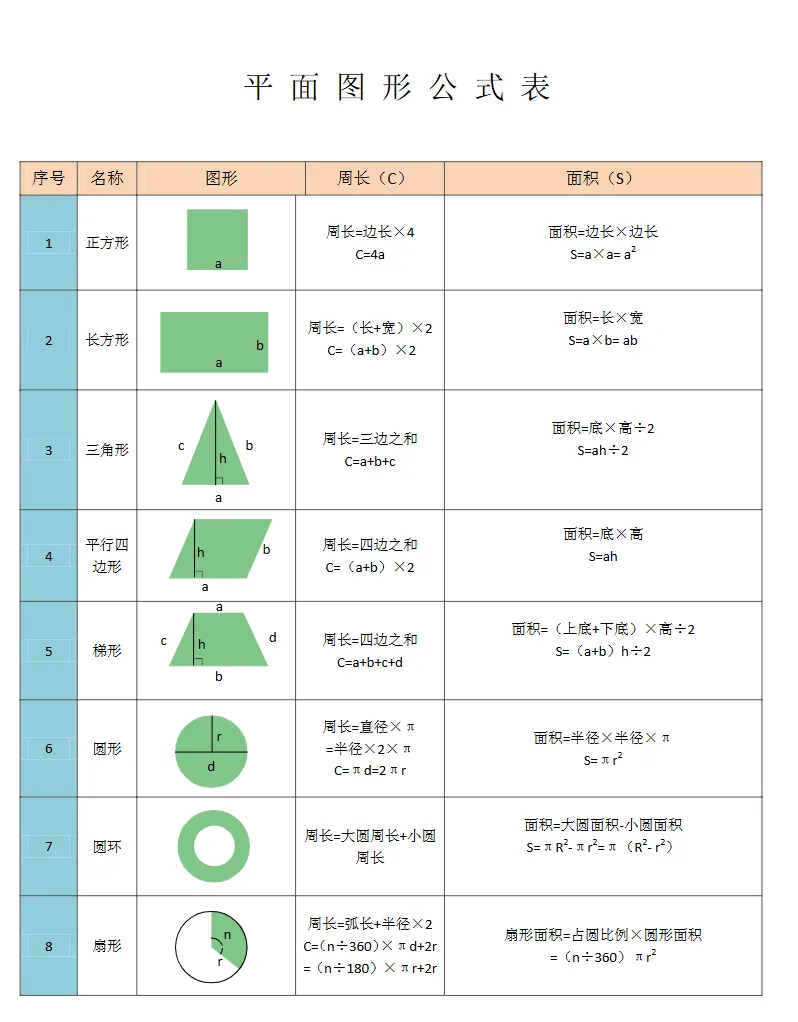 平面图形公式表