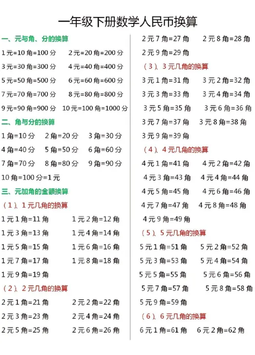 1-6年级小学数学