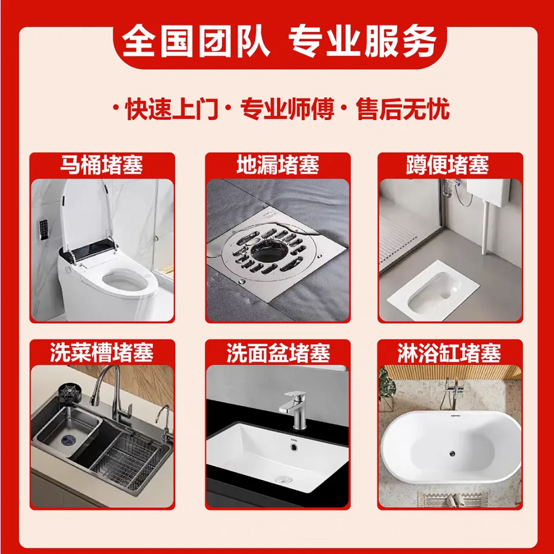 🔄 疏通服务:涵盖家庭、酒店等各类下水道、马桶、面盆、菜池、蹲坑、地漏的疏通与维修。