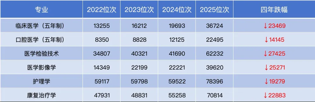 从22年~25年的录取数据来看哪些专业在"跳水"?