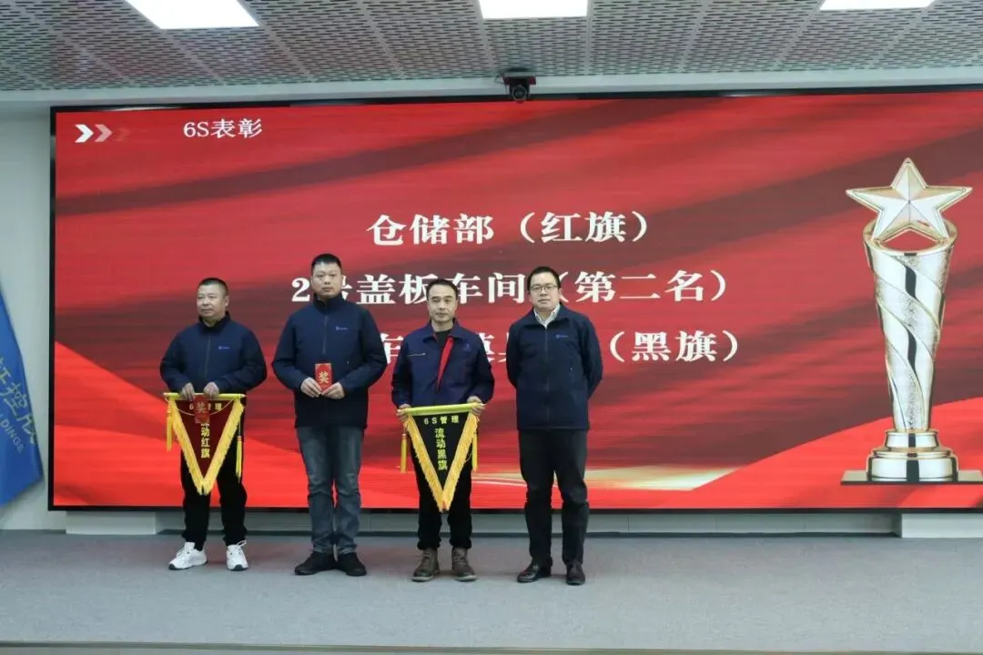 本期获得6S表彰的部门:仓储部(红旗)、2号盖板车间(第二名)、铝壳车间模具部(黑旗)。