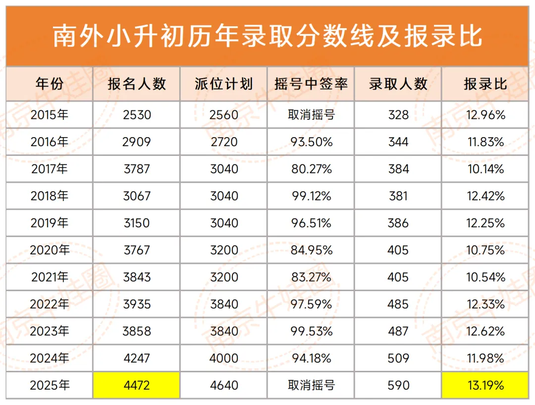 从2015-2025近十年,每年南外面测报名人数都在三千人左右,2025更是接近4500的报名。
