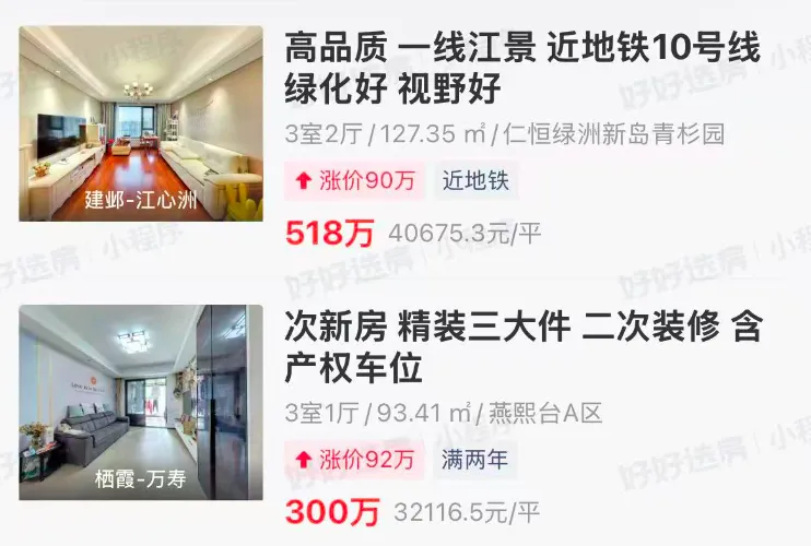 小阳春说来就来,最近南京二手房涨幅全国第一,引发热议。与此同时,一些房主紧急调价,让还在观望的买房人傻了眼。要知道,过去5年时间,南京不少板块的房价比起巅峰时期缩水一半,让很多房主欲哭无泪。有人选择割肉离场,更多人则是苦苦等待楼市回暖,房价反弹。今年,市场的确有些不一样了。不少中介都反馈,春节假期之后,看房量激增,一些房主看到市场回暖,开始涨价卖房,甚至有人直接加价100万!比如刚刚,河西南正荣润峯一套房涨价100万,佳兆业城市广场三期一套房涨价102万,河西金茂府一套房涨价70万!江心洲仁恒绿洲新岛一套三房,涨价90万,燕子矶的燕熙台一套90多平的房子也直接提价92万。江北更是一堆房子在涨价。从浦口城南中心,到老江浦再到核心区,很多房主都紧急调价,近期的成交价也确实涨了不少。此外,万科大都会一套房直接涨价50万、江宁九龙湖金隅紫京云筑一套房涨价41万、高科紫星荣院一套房涨价43万、江宁滟紫台一套房涨价60万、保利中央公园一套房涨价37万、江宁上秦淮银城旭辉铂悦秦淮一套房涨价44万…… 近期成交的一些房子,砍价空间也越来越小了。网上不少朋友分享近期在南京买房、看房的经历。其中就有人亲身经历了临时被房东坐地起价。还有网友分享自己最近的买房经历:感觉好突然,签约中心全是人。梭哈了公积金买了学区房,看房热度导致多出了好几万,同一套房好几个人一起报价。有网友分享:从去年9月开始看房,一直观望,发现过完年房价涨了,尤其河西南的小三房,成交价拉升很明显。雨花但凡出来一套性价比好房,几乎当天就成交。能感受到买卖双方在博弈。还有网友分享:3月南京楼市暴走,最近两周几乎每个售楼处都有如同春运的人流量,案场销售接不过来,都是中介自己接待,房子呼呼卖。市场一旦回暖,根本不用销售技巧。贝壳的带看数据也佐证了这一点:3月7日带看突破1722组,最近南京新房市场在人才新政的刺激下,确实十分火爆。上周末两天(3月7、8日),南京网上房地产数据,新房认购了300多套;二手房光贝壳就卖了700多套。也就是说,两天时间南京卖了1000多套房!