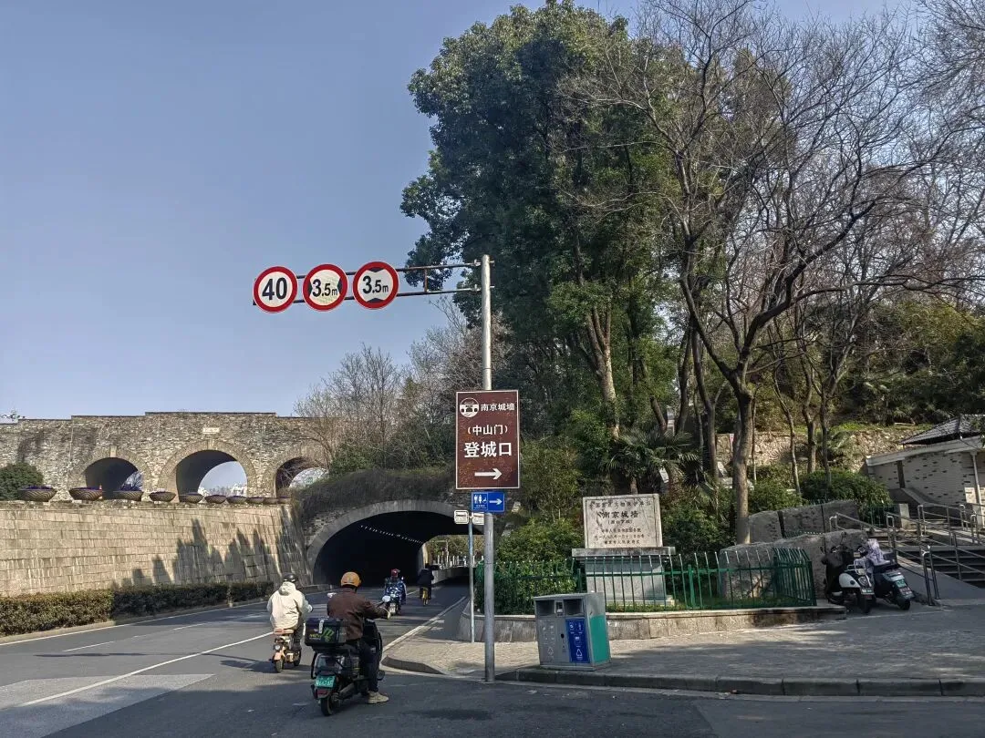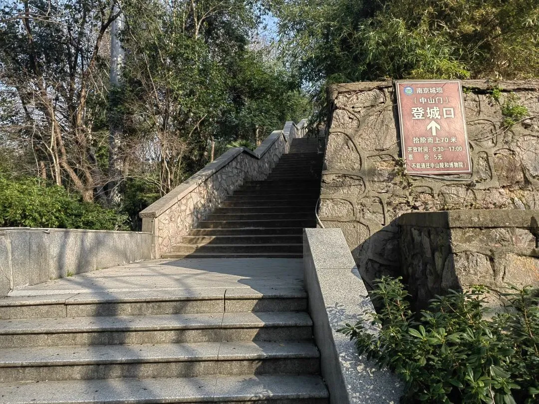 也就是朝着中山门的方向上坡走到底,就是中山门城墙的登城入口,