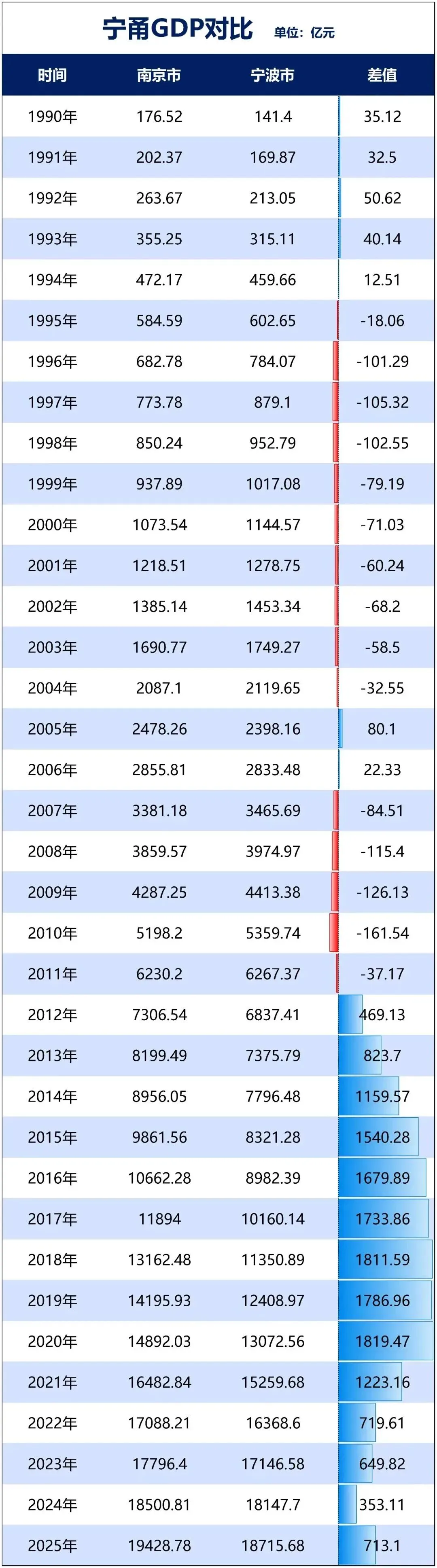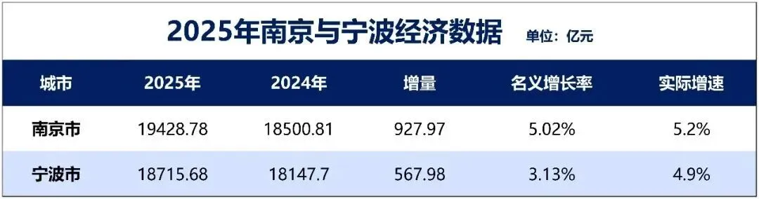 经济十强城市的“守门员”之争,从来不只是数字游戏。2025年数据揭晓,南京以约19429亿元的地区生产总值,领先宁波约713亿元,稳住了第十的位次。表面看是南京成功守擂,但数字之下,是两座城市发展逻辑的鲜活对照,也是观察中国区域经济活力的绝佳样本。