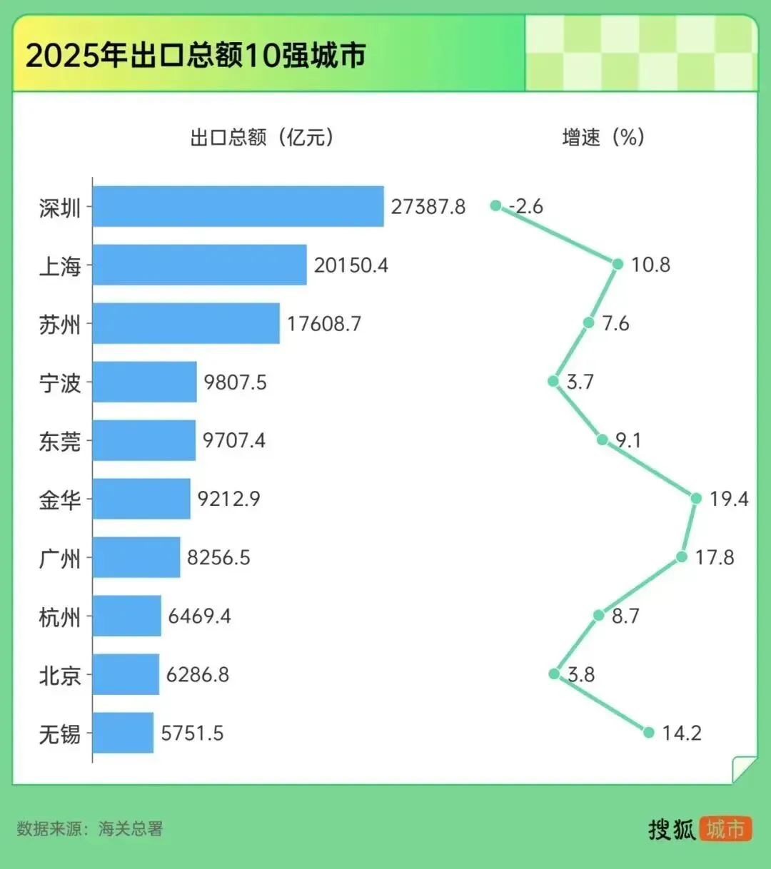 反观宁波,4.9%的增速略显平淡,其核心变量在于外贸。这座因港而兴的城市,外贸依存度极高。2025年,其外贸进出口增速放缓,一个重要背景是复杂的国际贸易环境。作为对美出口依赖度较高的港口城市,宁波更像是中国外贸的“晴雨表”,全球贸易链的微妙波动,总会在这里率先感知。