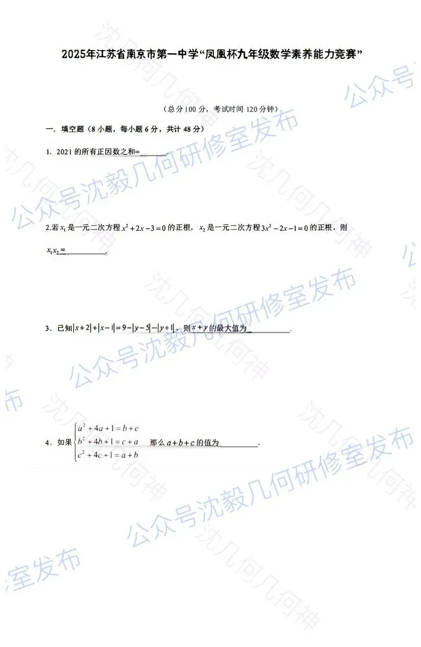 2025年江苏省南京一中“凤凰杯九年级数学素养能力竞赛”