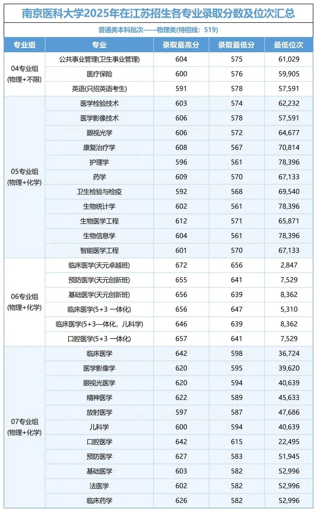 南京医科大学2025年在江苏省各专业录取分数线出炉!最高672分!