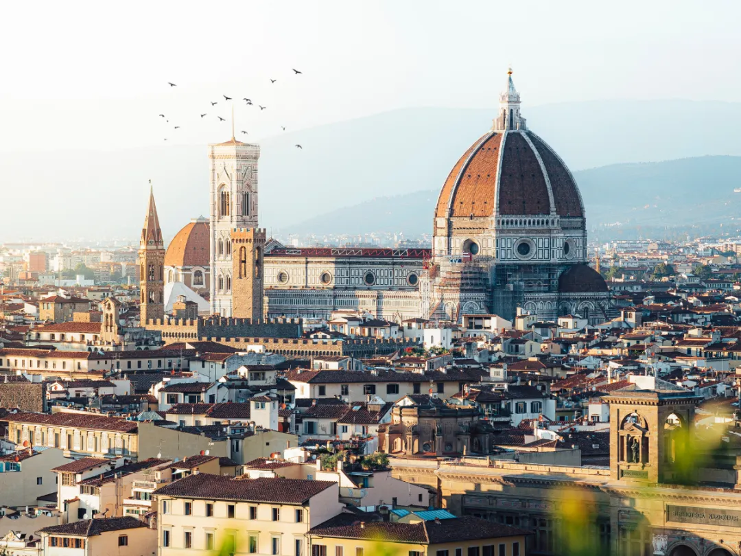 游览徐志摩笔下的“翡冷翠”——佛罗伦萨。外观花之圣母教堂、乔托钟楼,在市政厅广场欣赏大卫像复制品。