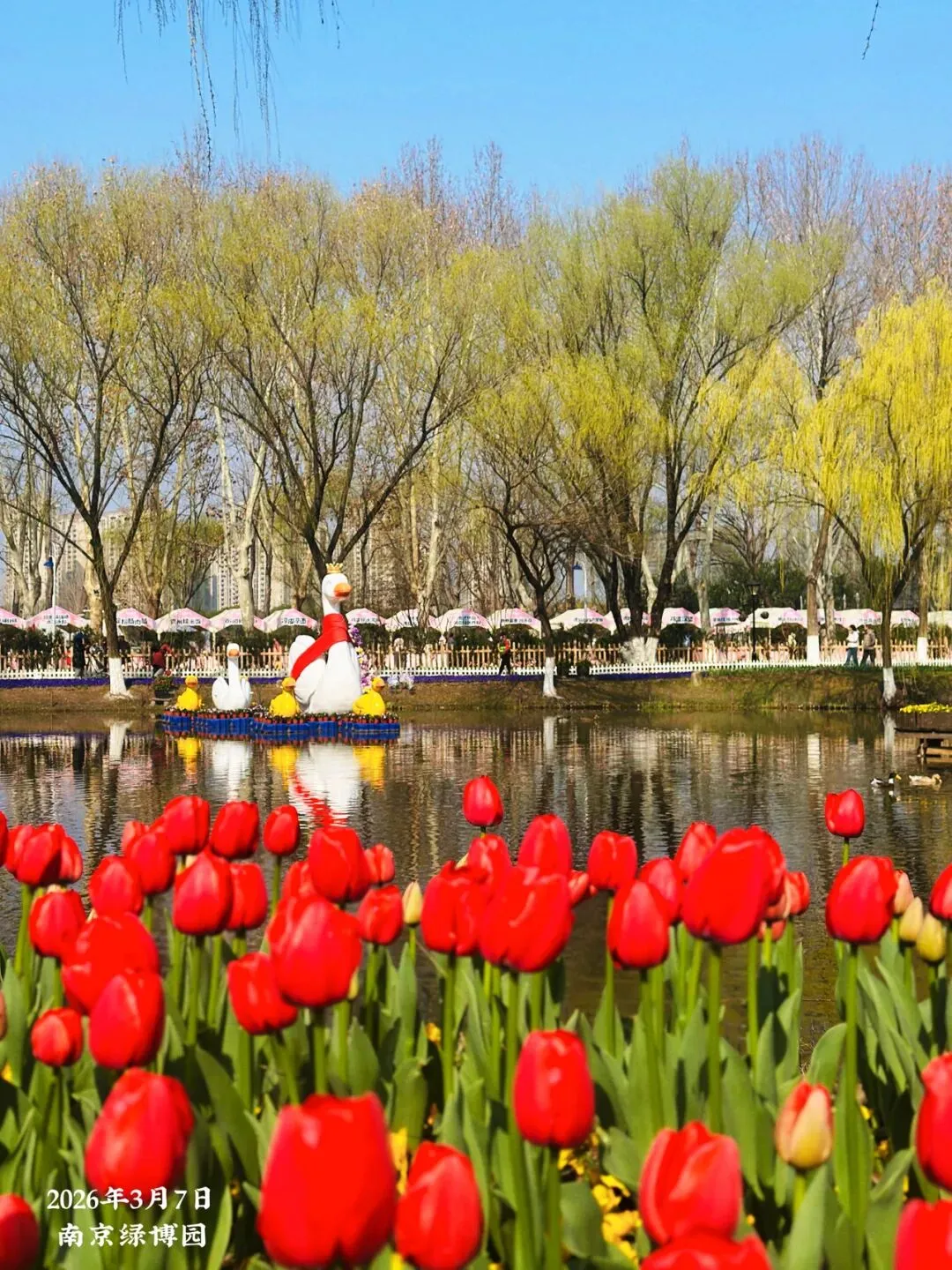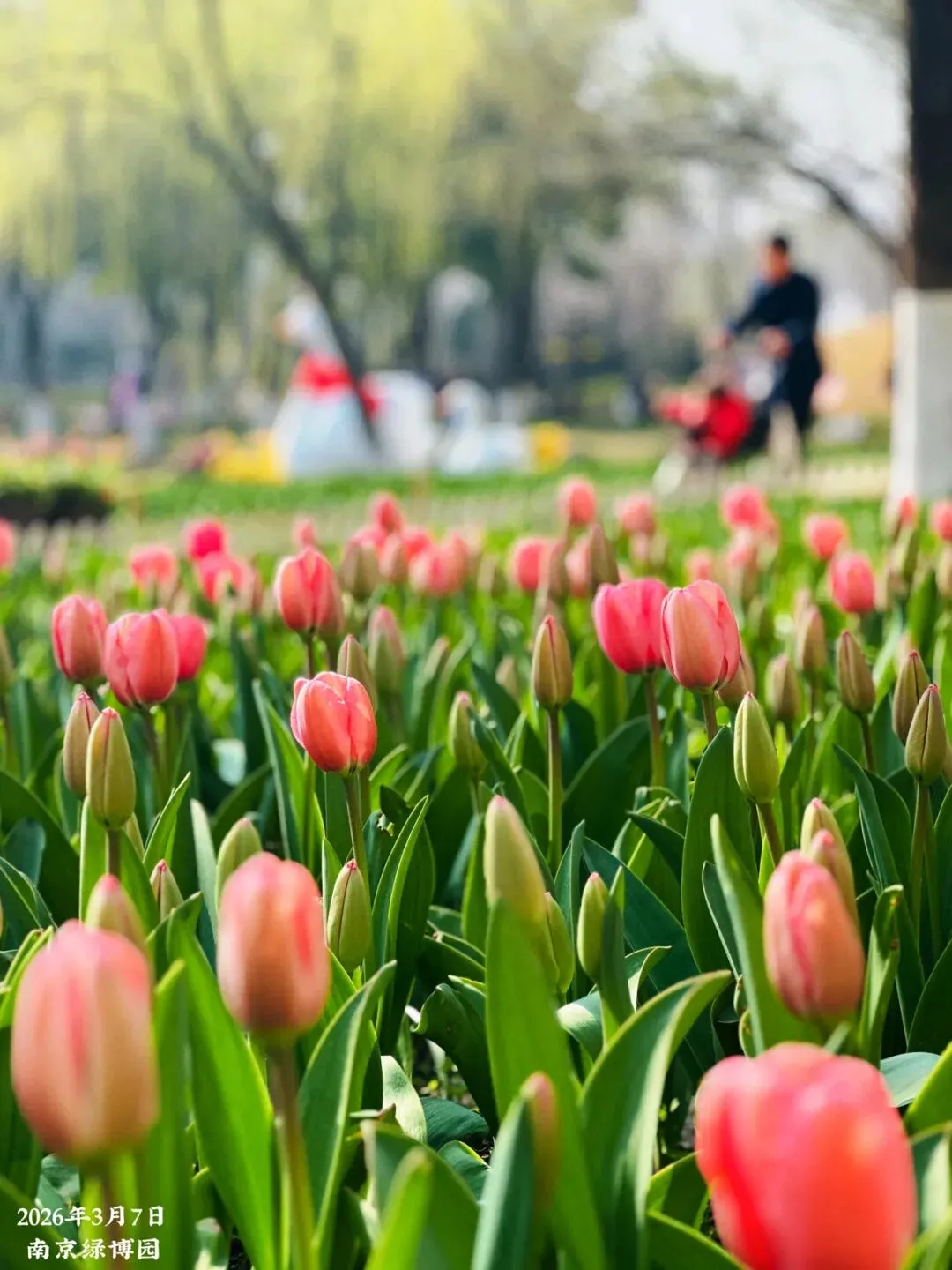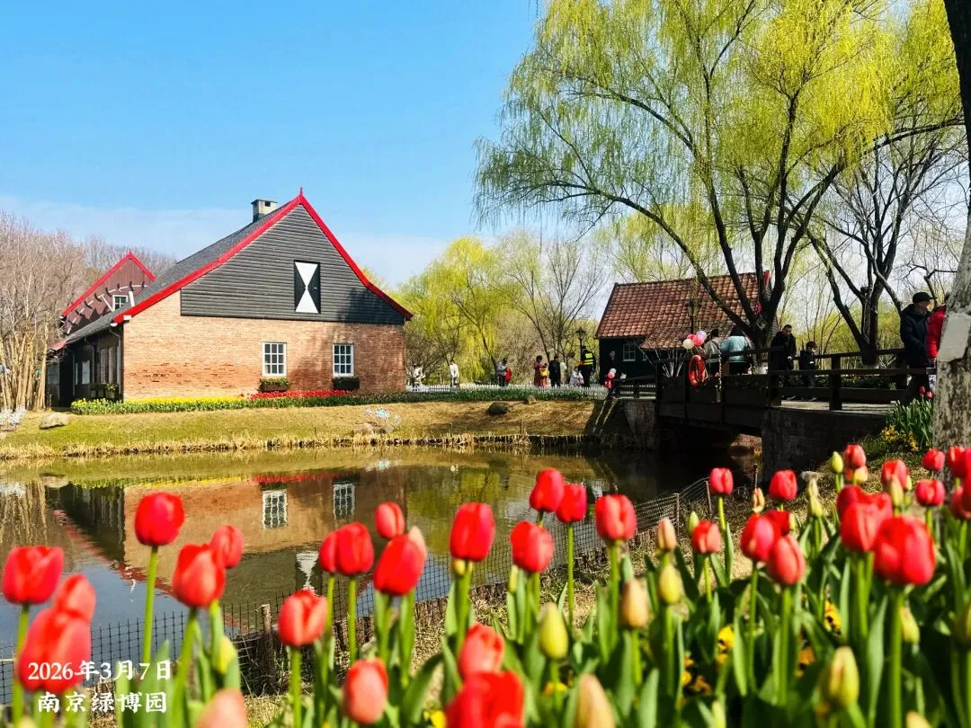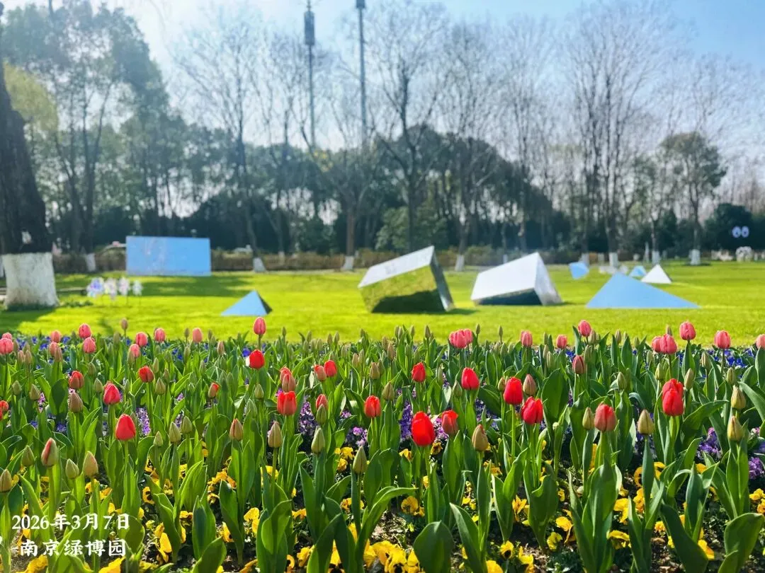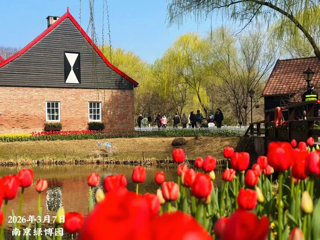 南京绿博园“荷兰园”的郁金香花会如约而至,3月7日起,盛大开幕的郁金香花海迎着暖阳次第绽放,22个品种的郁金香,3个品种的风信子与鲁冰花、银莲花等缤纷花卉错落交织,红的热烈、粉的温柔、紫的典雅,层层叠叠的花海勾勒出一幅流动的春日画卷。