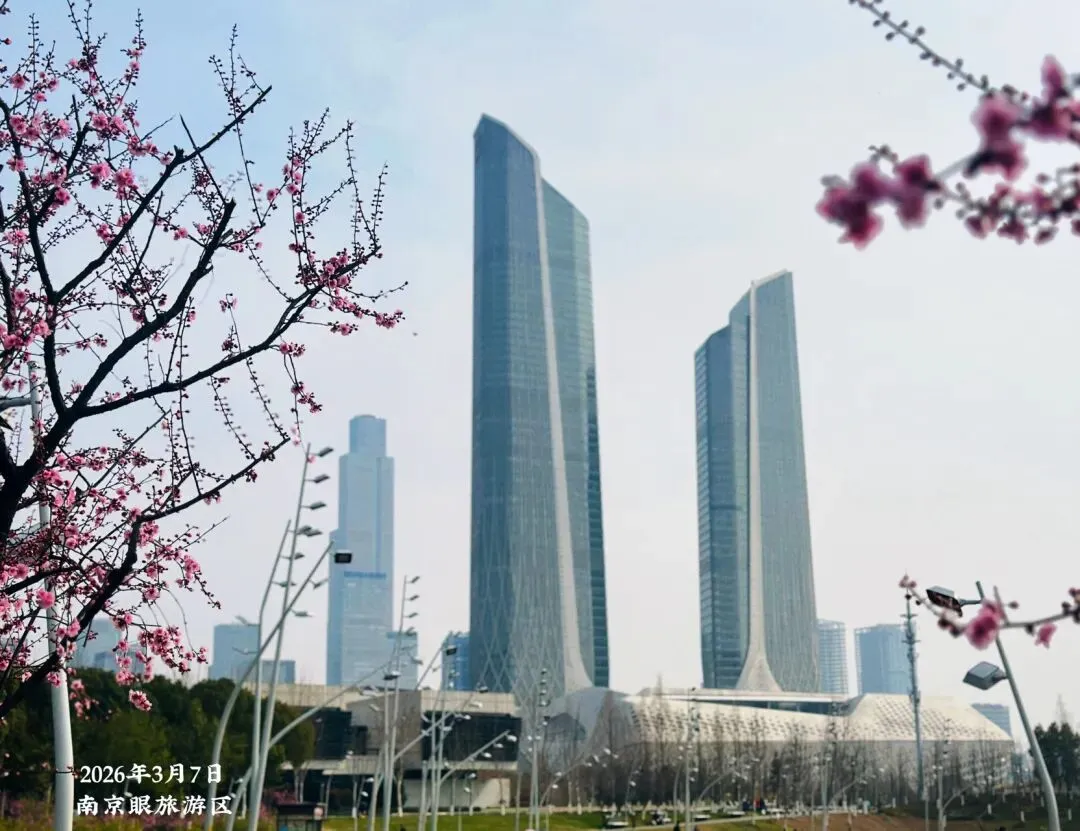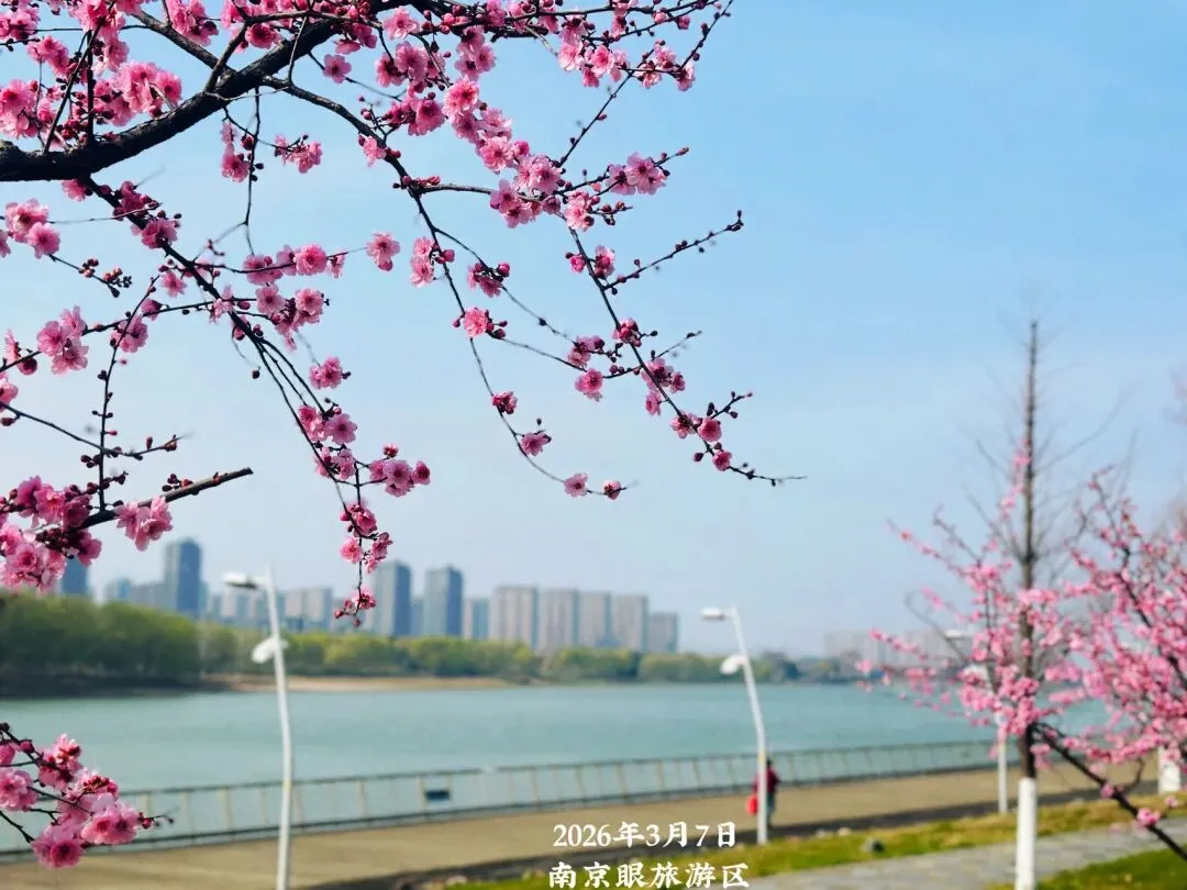 有时间的话,沿江堤边步行约25分钟左右,可以到达南京滨江公园和南京眼旅游区。目前这附近的美人梅正是盛花期。