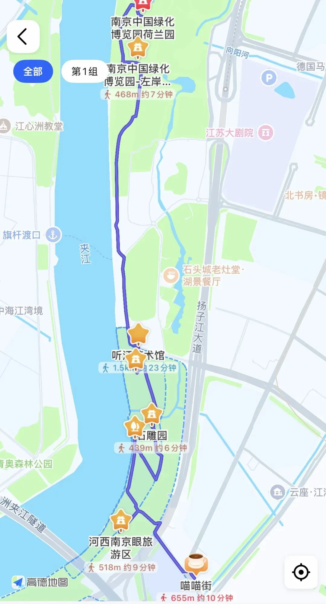 就餐的话,可以选择南京眼附近的喵喵街,吃完饭,拍拍街区的猫猫也是别有一番乐趣。今日全程一天时间,步行约2万步左右。春风拂过,万千花盏次第盛开,铺成一片温柔绚烂的花海。年年花开,人来人往,热闹里藏着最动人的春日浪漫。莫负春日好,约上三五好友,共赴一场春天的约会吧!