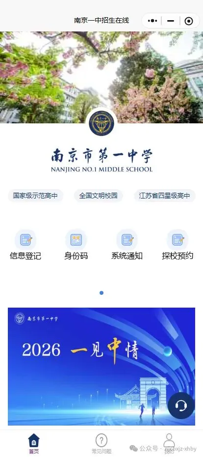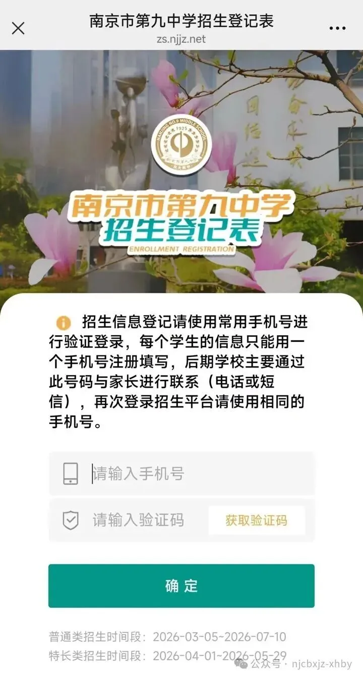 南京一中官微菜单栏内点击招生登记,可进入信息登记页面。