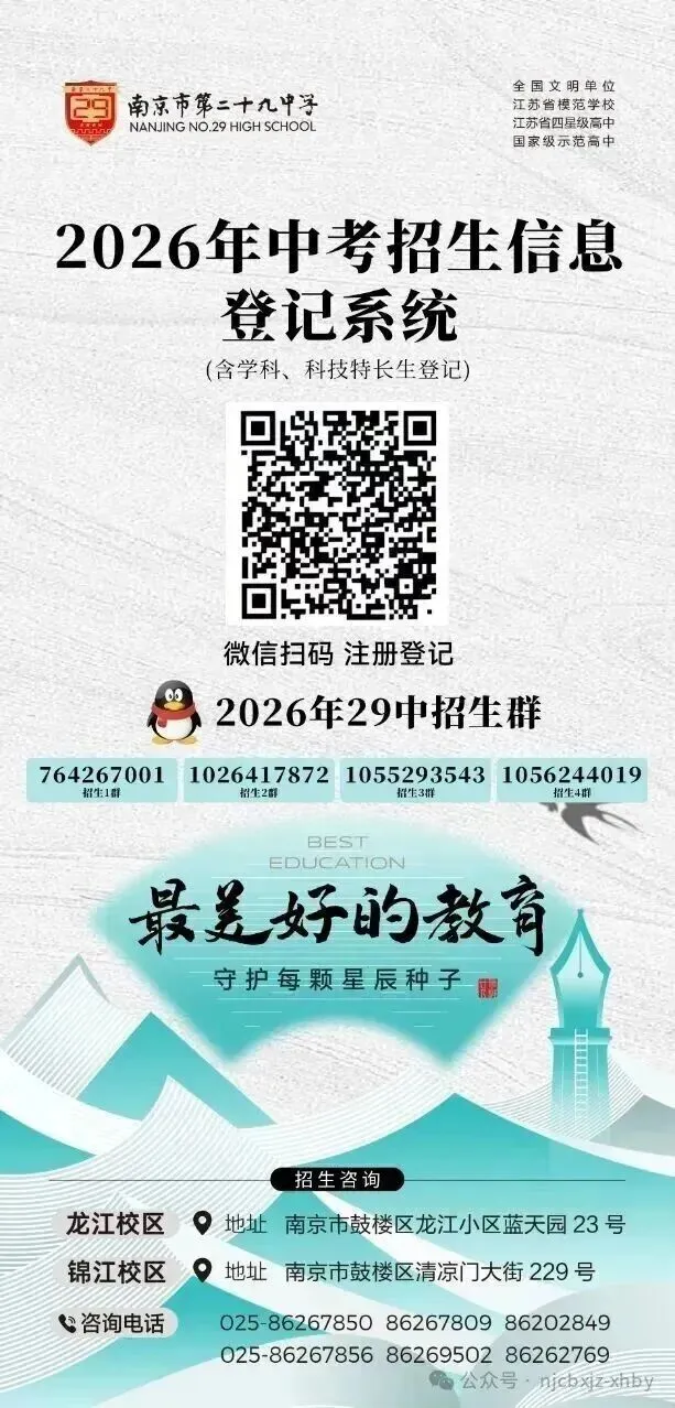 金陵中学官微菜单栏内,点击招生信息可进入信息登记页面。