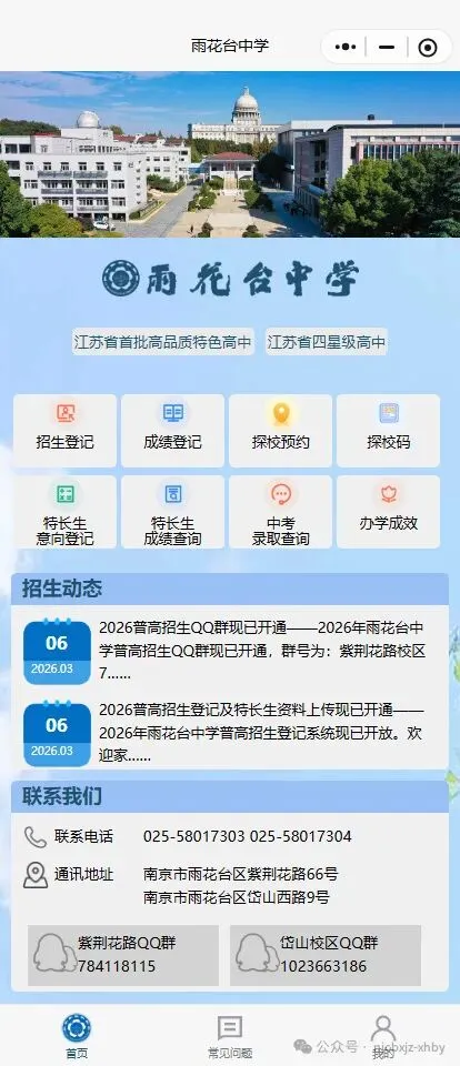 雨花台中学官微菜单栏内点击招生登记,可进入信息登记页面。