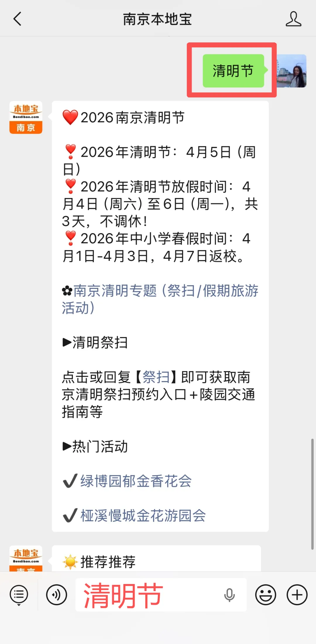 ➤小编提醒:扫描下方二维码,关注【南京本地宝】,后台对话框回复【清明节】即可获取南京清明节活动攻略、景区游玩指南等。