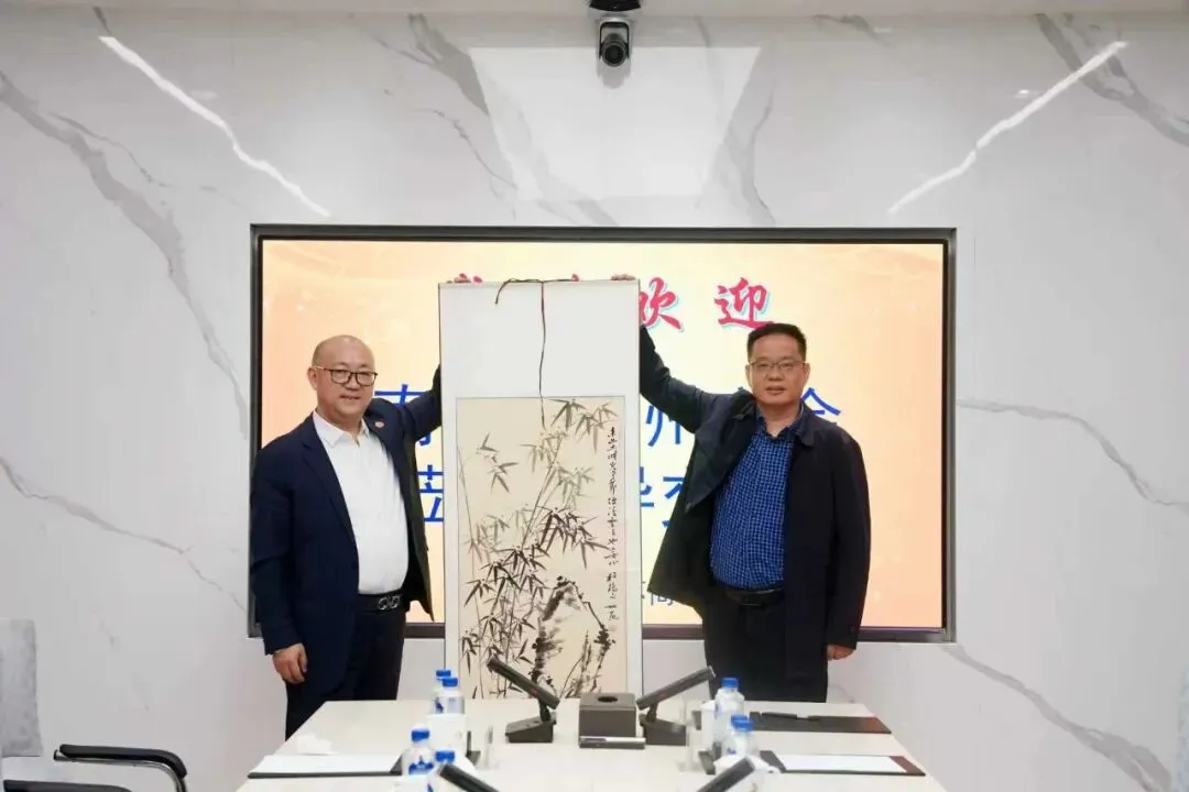 会后,双方互赠礼品。我会向海南省江苏商会赠送了书画作品与苏超冠军签名球衣;海南省江苏商会则以海南特色礼品回赠。