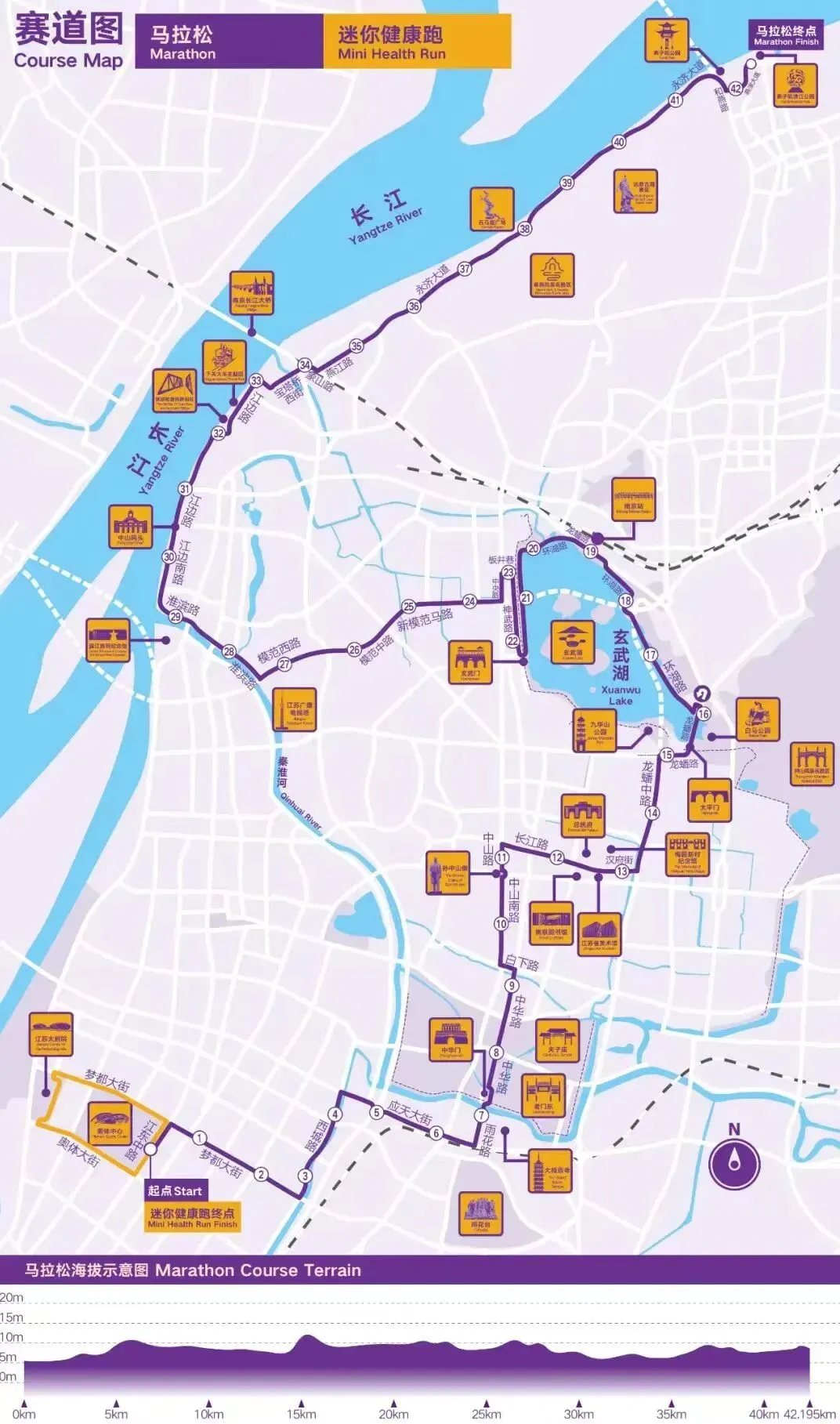 南京马拉松的赛道,本身就是一道风景线。以下是2025年的比赛线路,供大家参考预热: