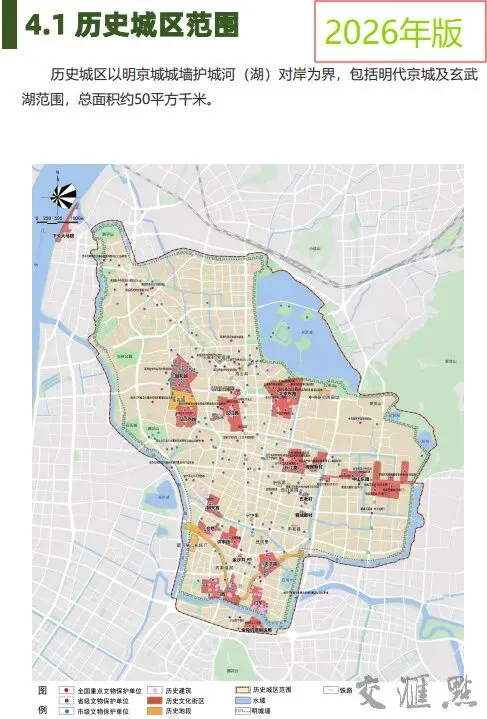 正在征询公众意见的新版历史文化名城保护规划显示,历史城区以明京城城墙护城河(湖)对岸为界,包括明代京城及玄武湖范围,总面积约50平方千米。