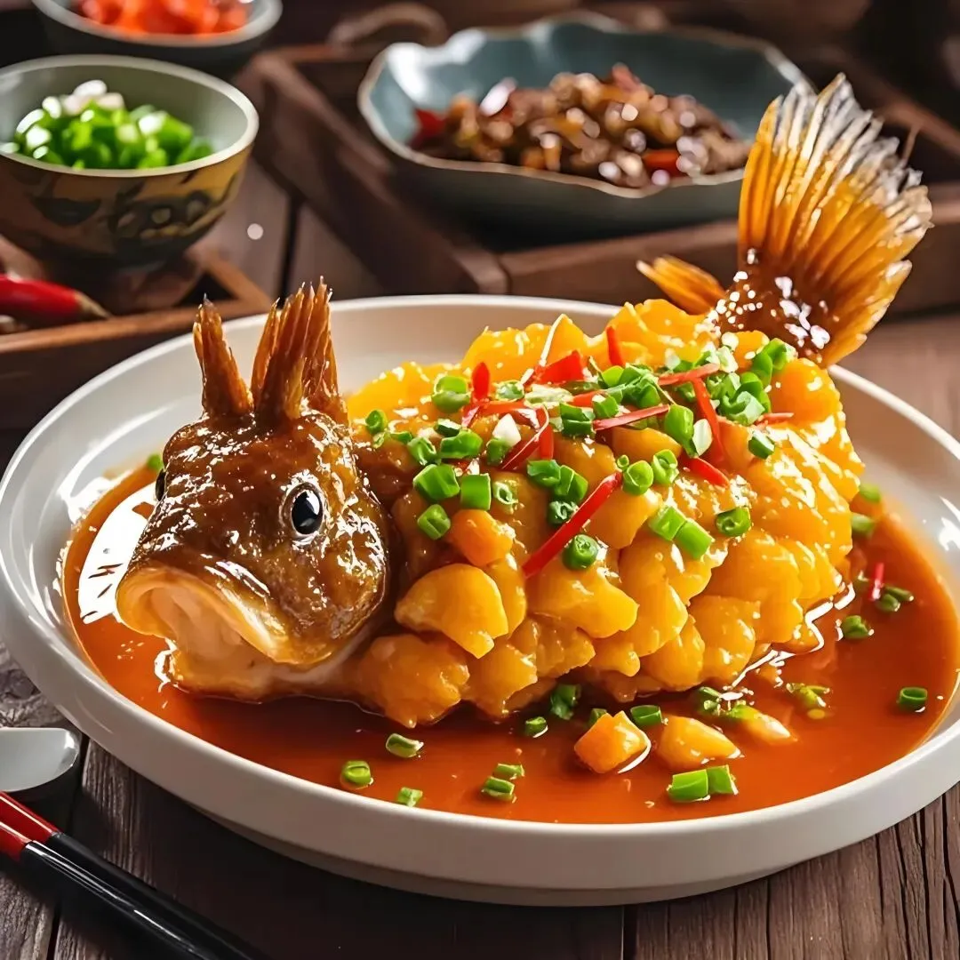 - 松鼠鱼:刀工精湛,遇热卷曲,酸甜开胃。