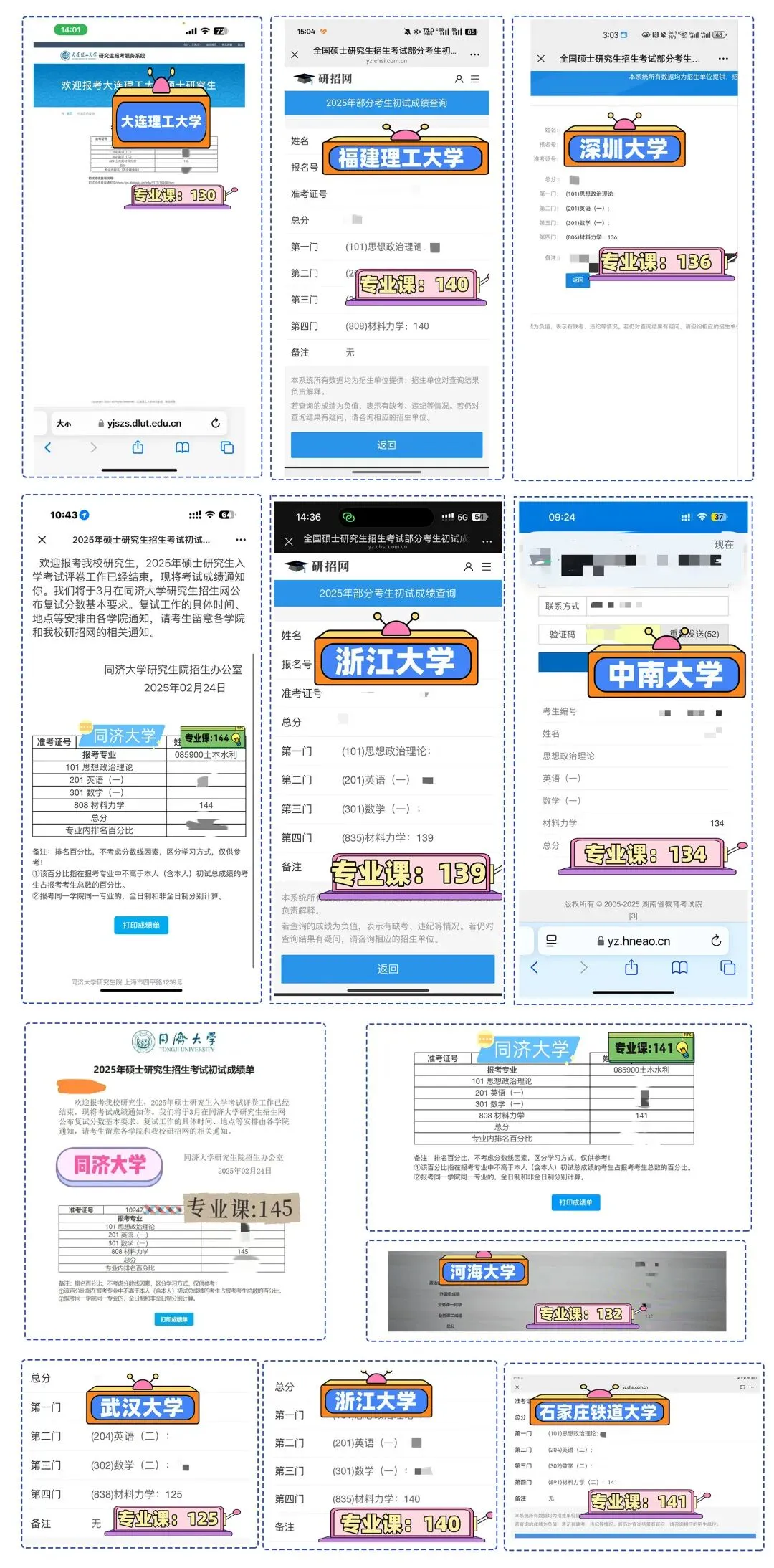 24年共有1651名同学报名了小鹿学姐的材料力学初试辅导班,其中562名同学专业课拿到了130+的高分,435名同学专业课拿到了120+的高分,210名同学专业课拿到了110+的高分,大连理工,中南大学,浙江大学等多个高校的初试前几名都有我们的学员。下面是一些学员的成绩截图: