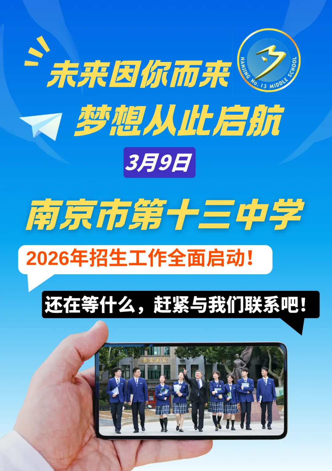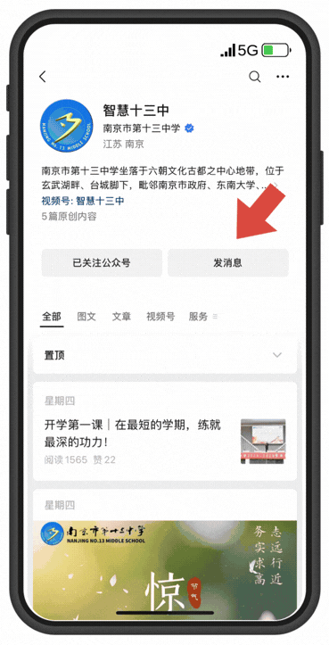 关注“智慧十三中”微信公众号下方“招生服务”选择“普高招生登记”进行登记。