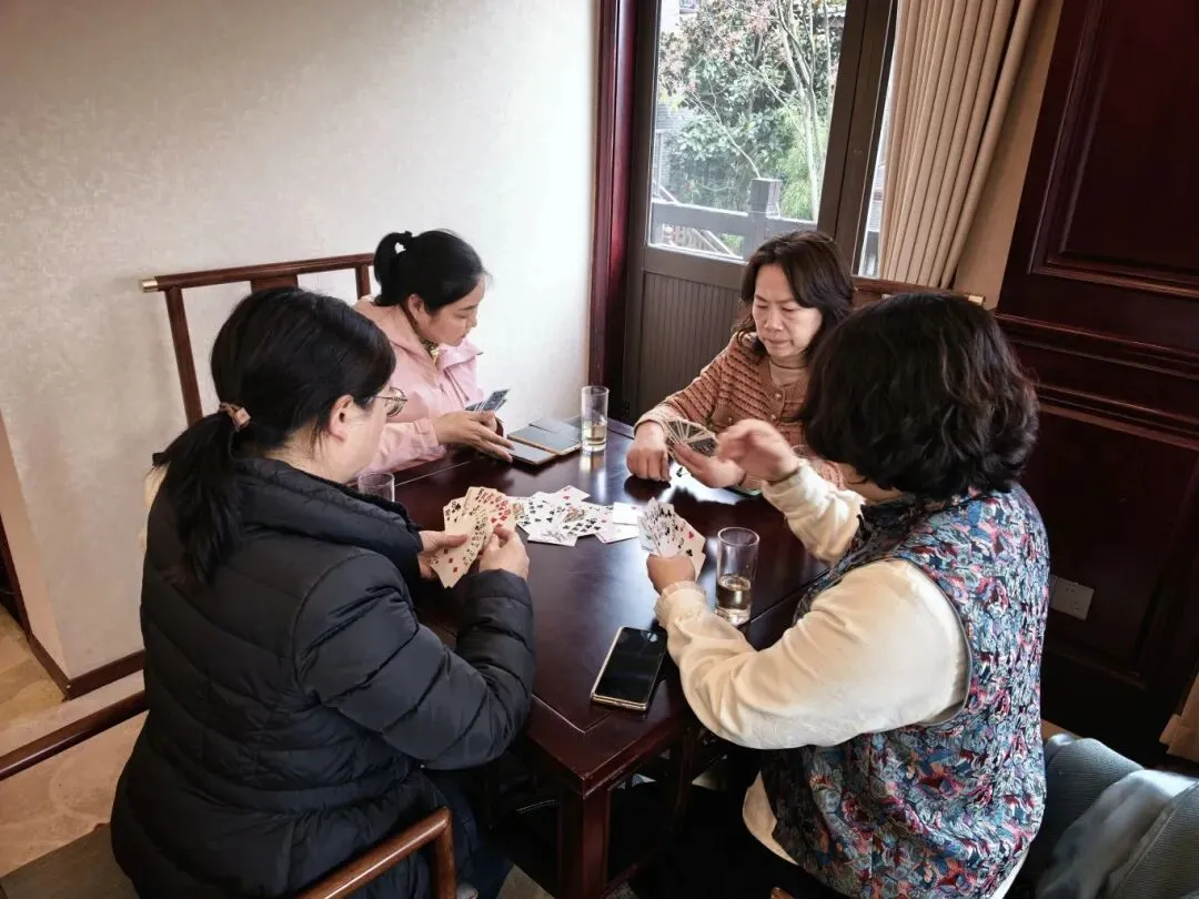 参观结束后,距离午餐还有些许时间,大家围坐一桌组队掼蛋,轻松的博弈、默契的配合,为欢聚的时光增添了更多乐趣。