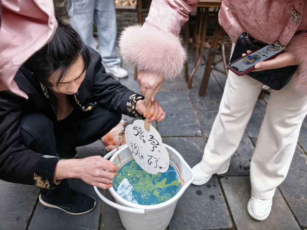 水波流转间,独属于自己的色彩与纹理便定格在扇面之上,每一把扇子都成为独一无二的作品,大家在亲手创作中感受传统手工艺的趣味与匠心。