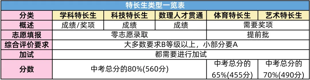 「学科科技类」,包含:学科特长生、科技特长生、数理人才贯通项目,主要目的是为了提前选拔成绩好的学生。