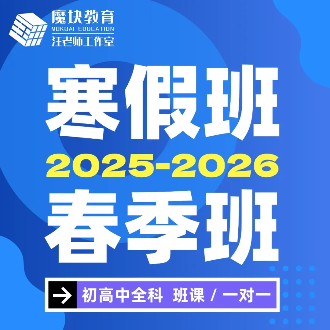 新学期,魔块教育「春季班」已于3月14日-15日如期开班,课程安排和教学大纲也已经全部推送,欢迎有意向的家长扫码咨询。关注我们,第一时间get名校真题解析!