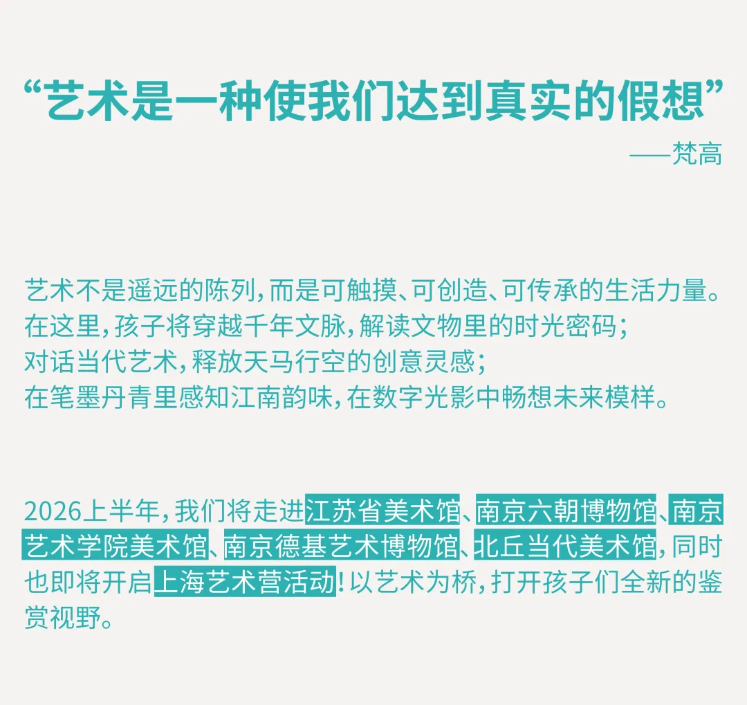南京ART儿童工场陪伴孩子们步履不停,走进一座又一座现当代美术馆,在艺术的浸润中观察、感知、落笔创作。