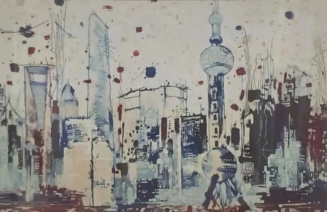 还有以上海城市景观为题材的抽象版画,以简洁而富有张力的艺术语言,展现了改革开放后中国城市的现代化风貌。画中人群观赏城市景观的场景,暗示着人民既是发展的见证者,更是发展成果的共享者。在南山湖的青山绿水间,这些版画让参观者直观感受到改革开放带来的深刻变革,读懂中国从站起来到富起来的历史性跨越,体会到“发展才是硬道理”的深刻内涵。