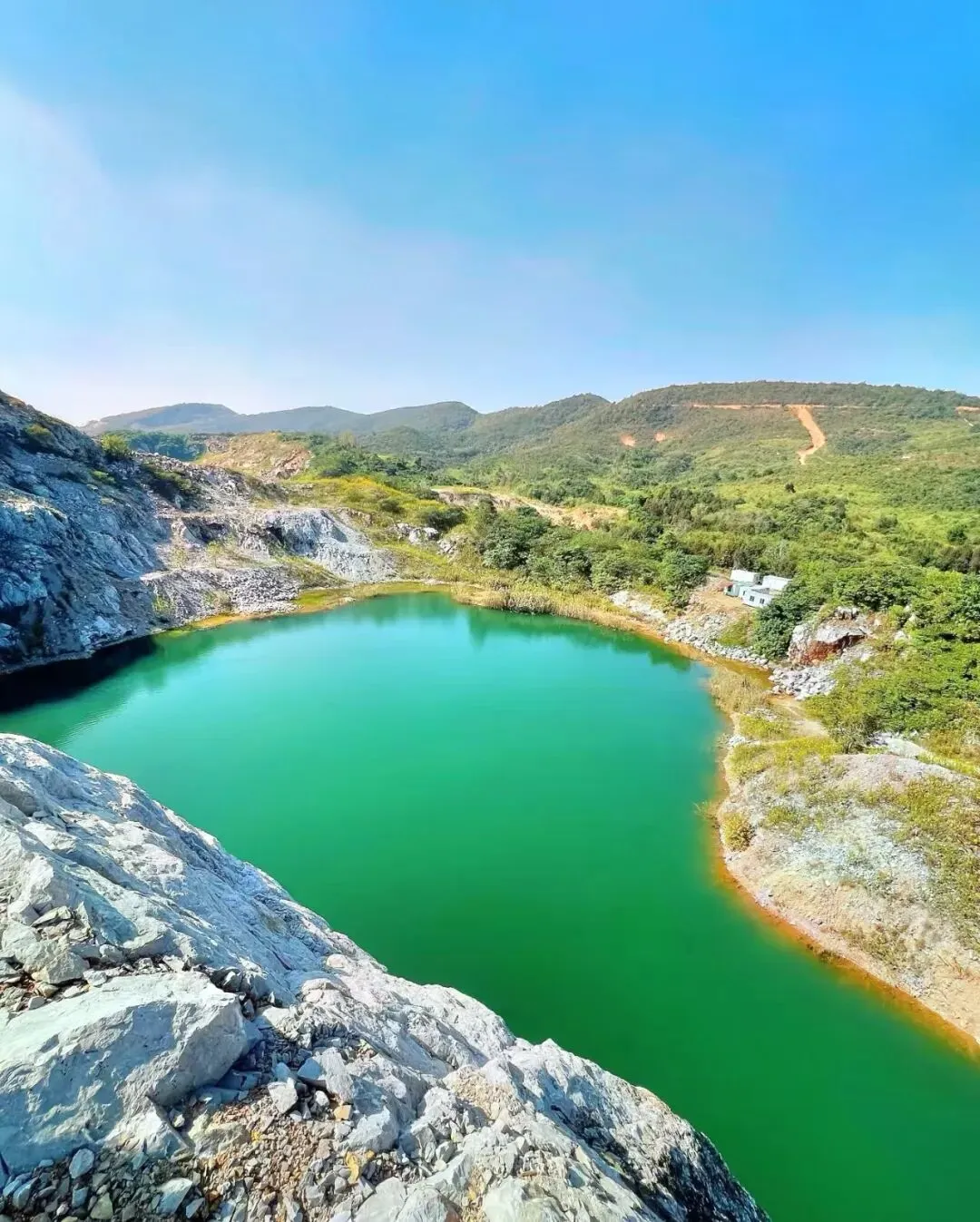 宝卡湖位于江苏省南京市江宁区郄家山郄坝埝水库东北方向,是一处因采矿形成的人工湖泊。翻越江宁青龙山的重重山峦,在险峻岩石的环抱之中,蓦然发现一汪碧蓝——这便是宝卡湖。湖水澄净如洗,与周遭粗砺的山体相映成趣,被誉为“南京小纳木措”。