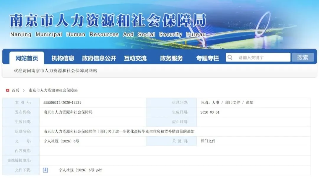 南京市人力资源和社会保障局等十部门关于进一步优化高校毕业生住房租赁补贴政策的通知